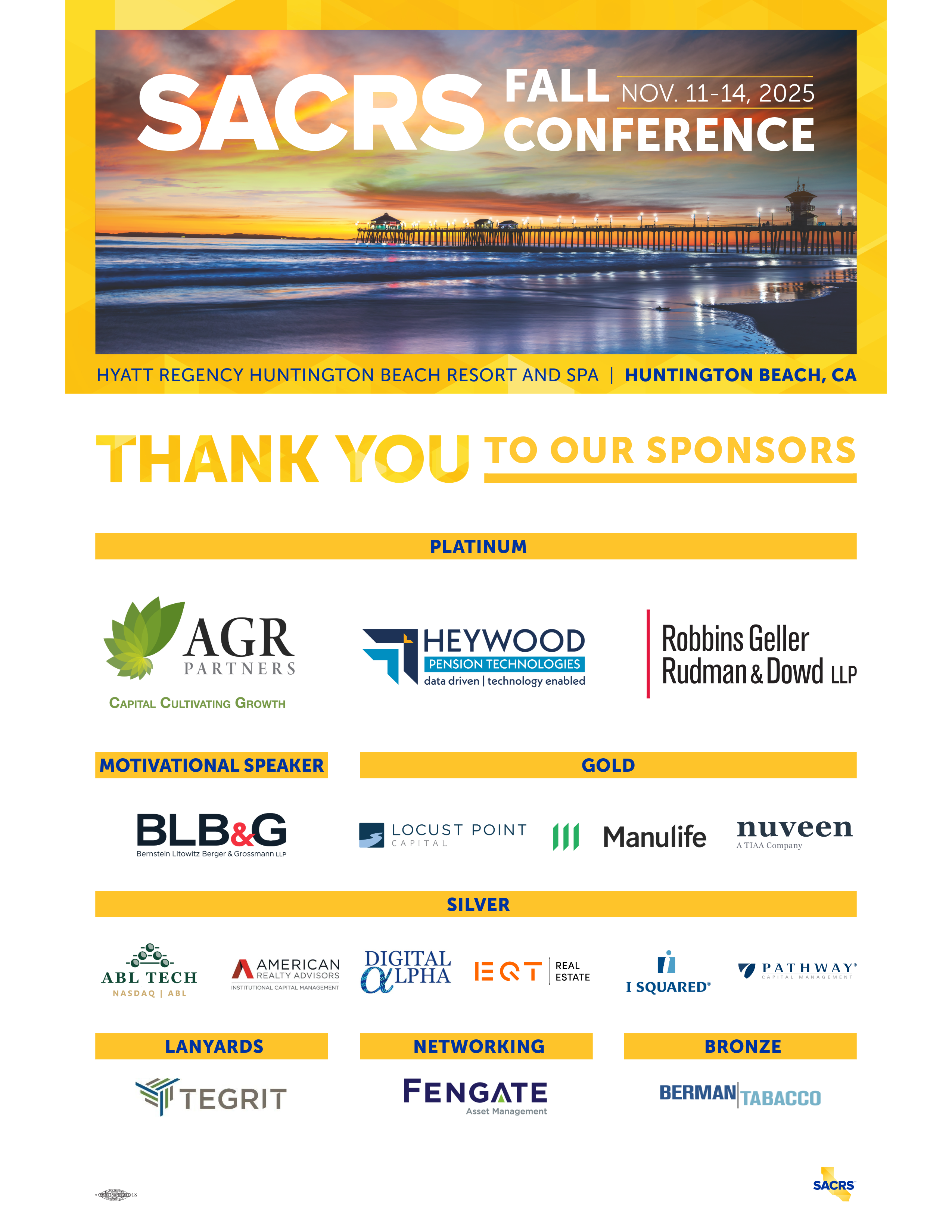 Take center stage in 2026! SACRS Sponsorship is an excellent way to expand your reach and solidify your position as a leader in the eyes of our association members. As a sponsor your organization becomes an integral part of our conferences, which are well attended by trustees and staff. This is your opportunity to reach this highly targeted audience! Do not delay, while there are a variety of sponsorships available to match budgets, sponsorship types are limited and sell out. To view all sponsorship options, click on the link below.